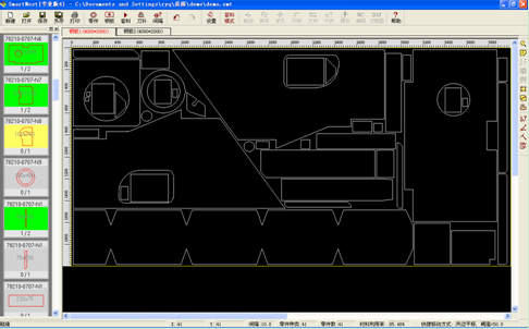 5、先進(jìn)的全自動(dòng)套料功能。采用新的計(jì)算智能技術(shù)和相關(guān)科研成果,對(duì)任意復(fù)雜形狀的異形零件進(jìn)行全自動(dòng)真實(shí)形狀套料,計(jì)算過(guò)程瞬間完成,優(yōu)化效果堪稱完美,材料利用率平均提高5%。